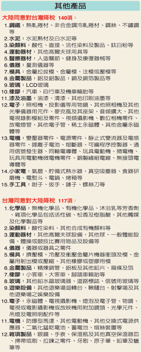 - 此分類上一篇: 台灣取得ECFA早收清單明細一覽表