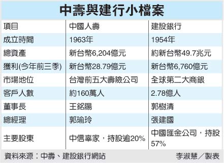 中壽攜手建行搶五年後中國銀保第一大 / 葉憶如