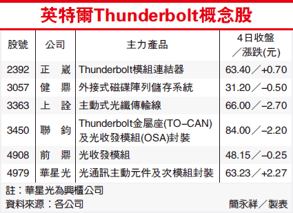 英特爾Thunderbolt來勢洶洶 概念股一覽