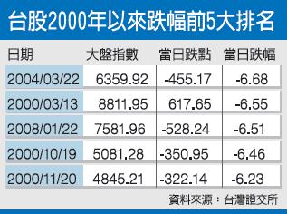 台股盤後-融資自殺恐慌賣壓湧 護盤基金搶救年線 重挫285點