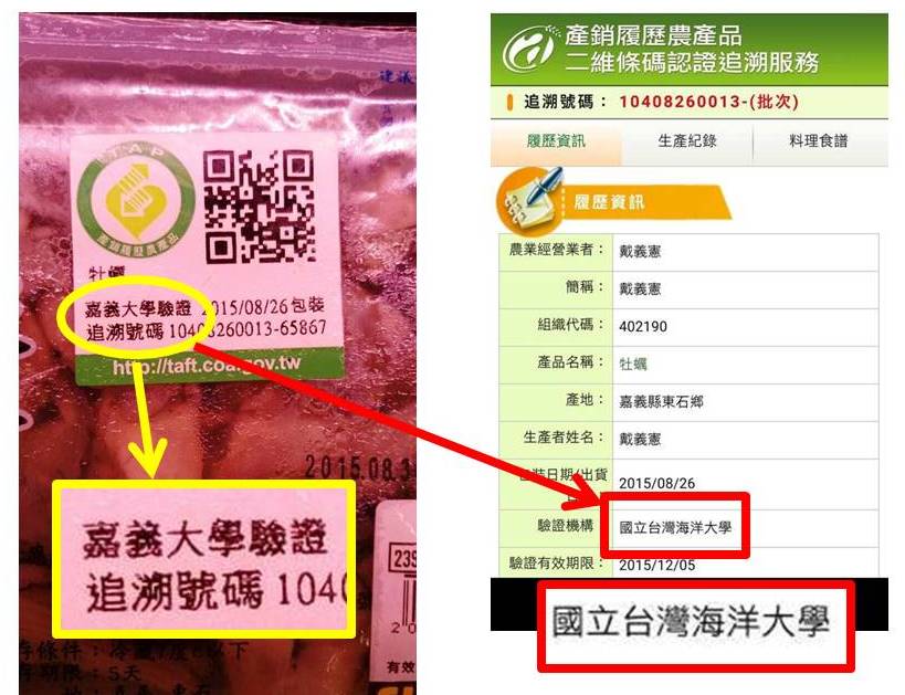 李建霖表示,嘉義縣政府一向積極推廣產銷履歷,平時就會不定期到賣場檢查,上周發現牡蠣的驗證單位不一致後,立即通知嘉義大學、送交農委會。
