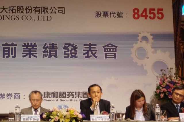 電機、電子商品經銷代理商F-大拓(8455)將於明年1月中旬上櫃,這也是第2家來台掛牌的日本公司,F-大拓主要經銷代理東芝等大廠產品,每年營收相對平穩,營運動能主要看客戶擴產需求,以及日本市場景氣,公司考量長期欲往大陸、東南亞市場發展,因此選擇來台掛牌,掛牌參考價約17元。